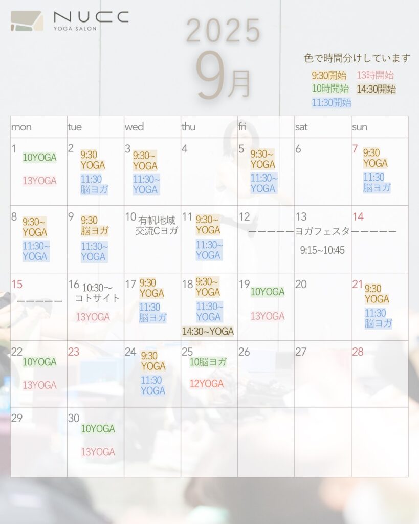 9月はヨガフェスタ横浜やコトサイト、有帆地域交流センターなど、ヨガサロン以外の場所にもお伺いします。